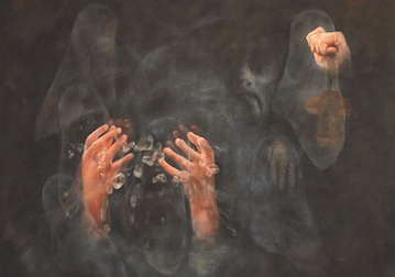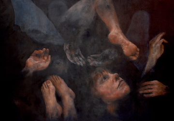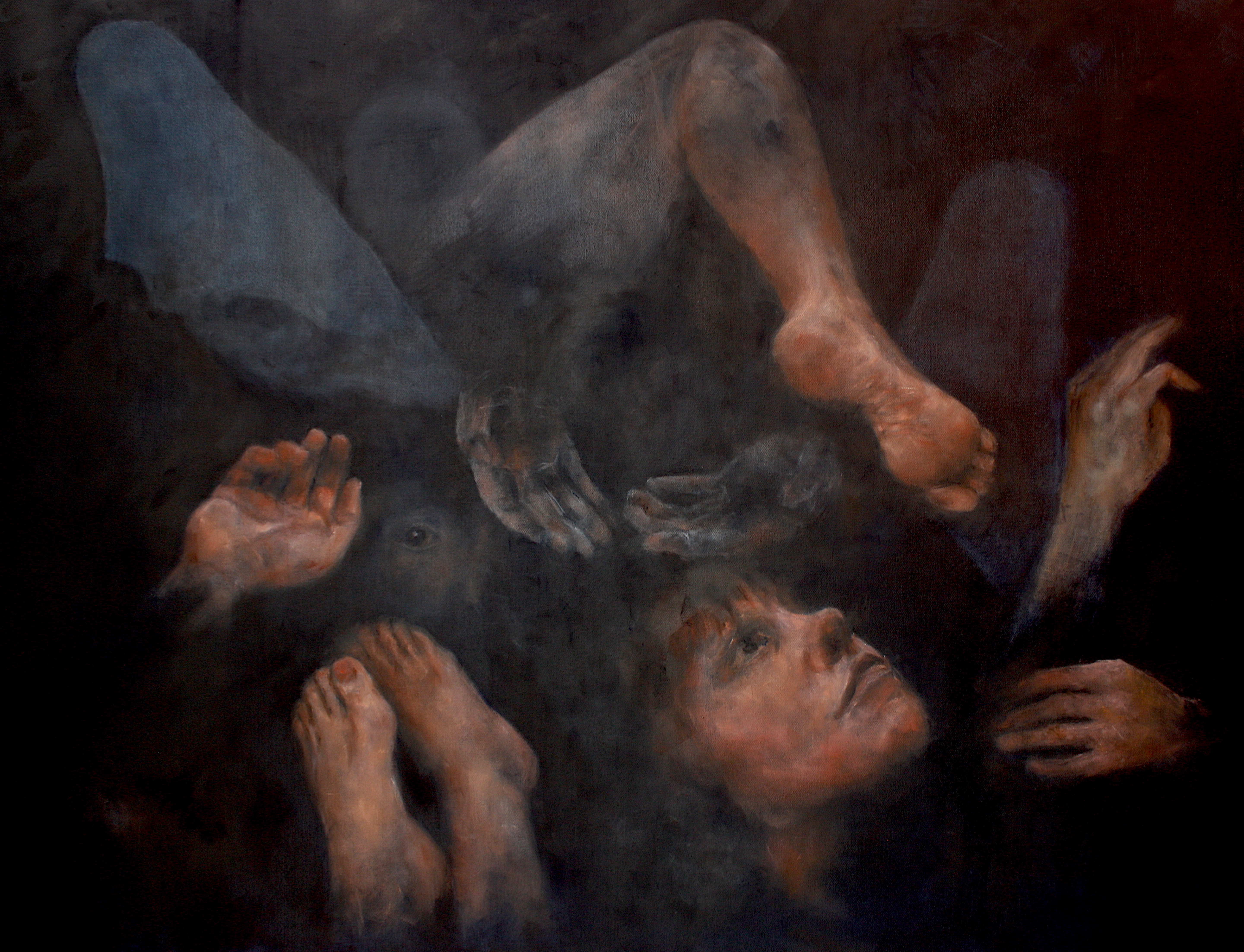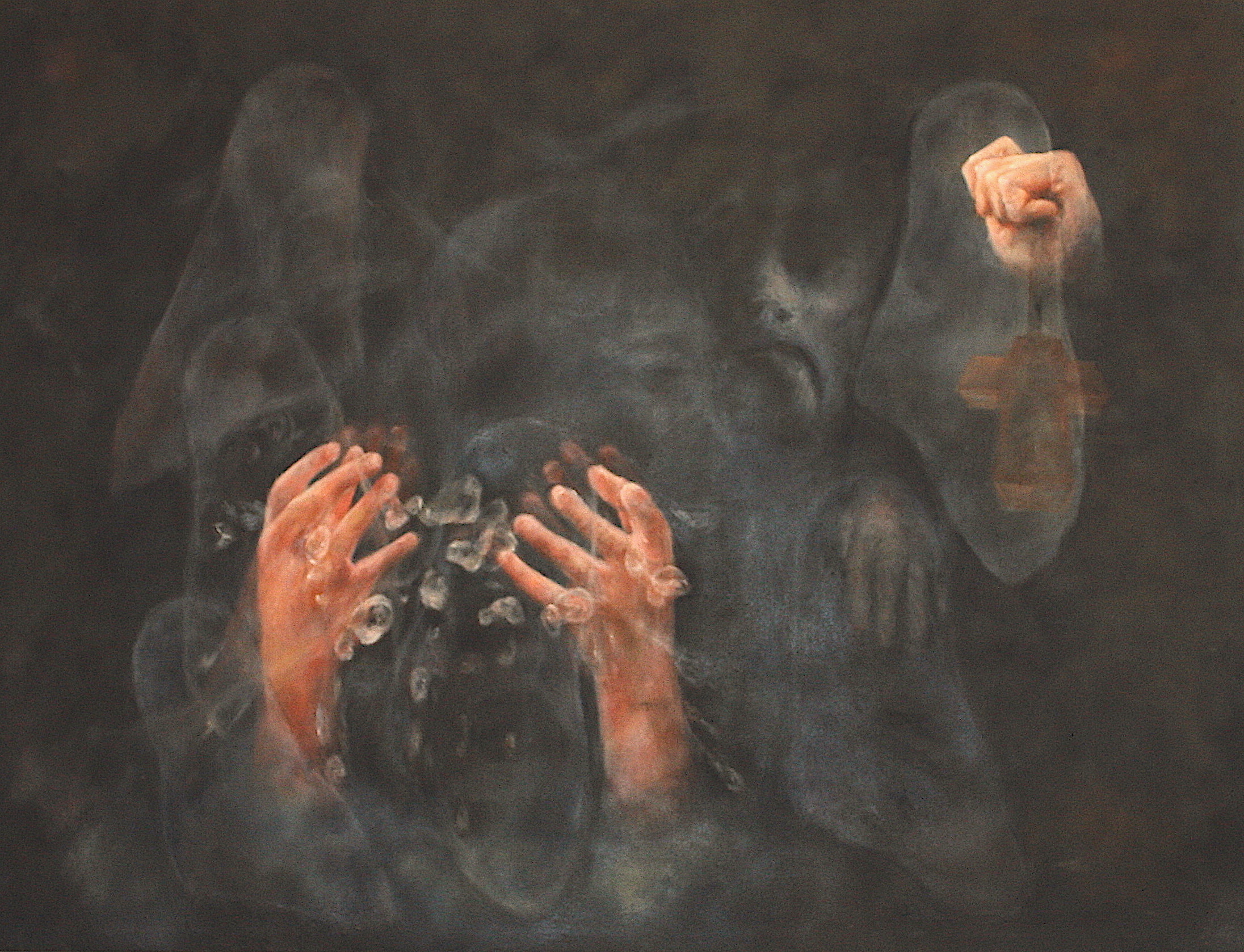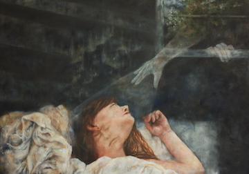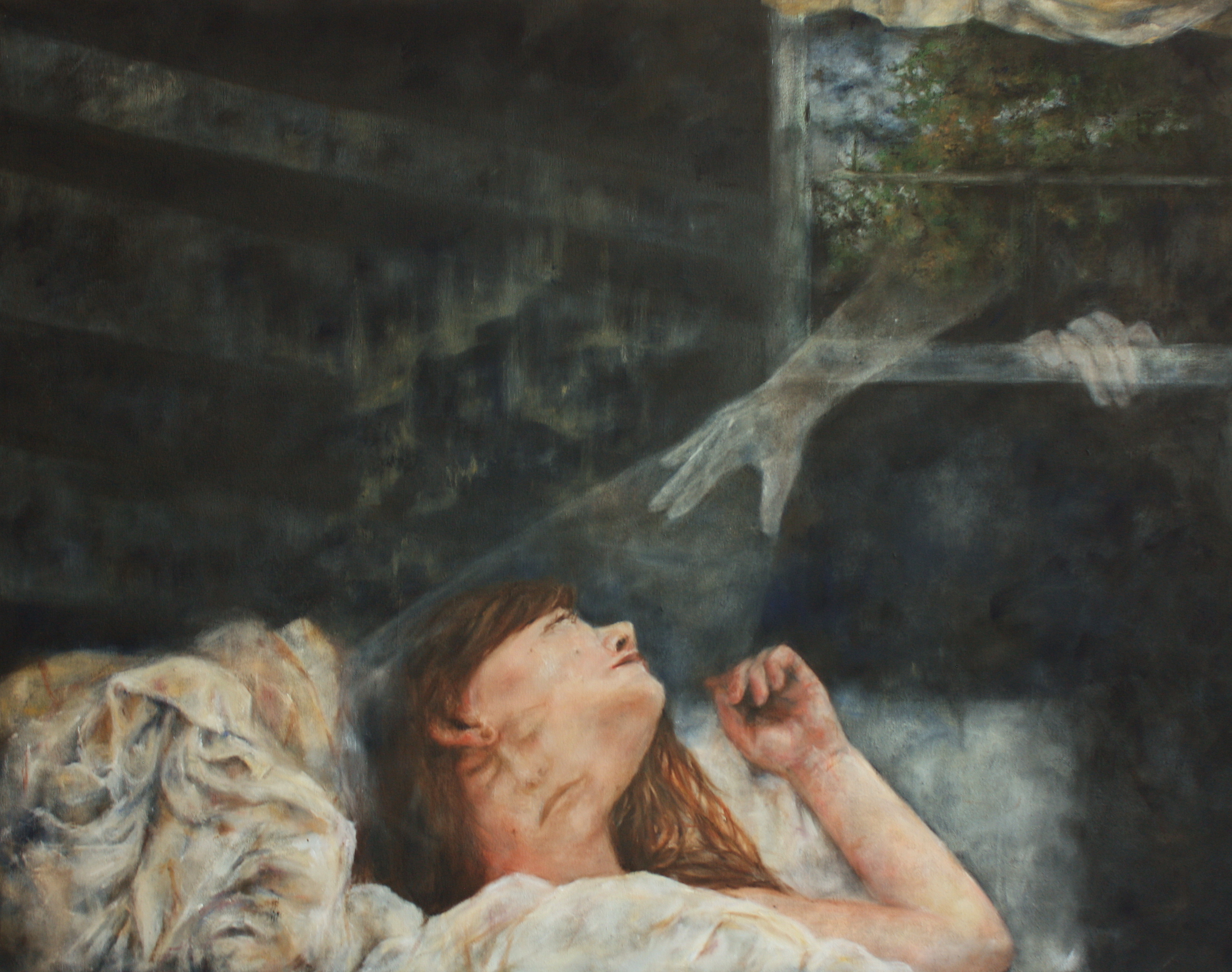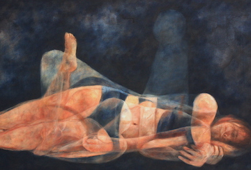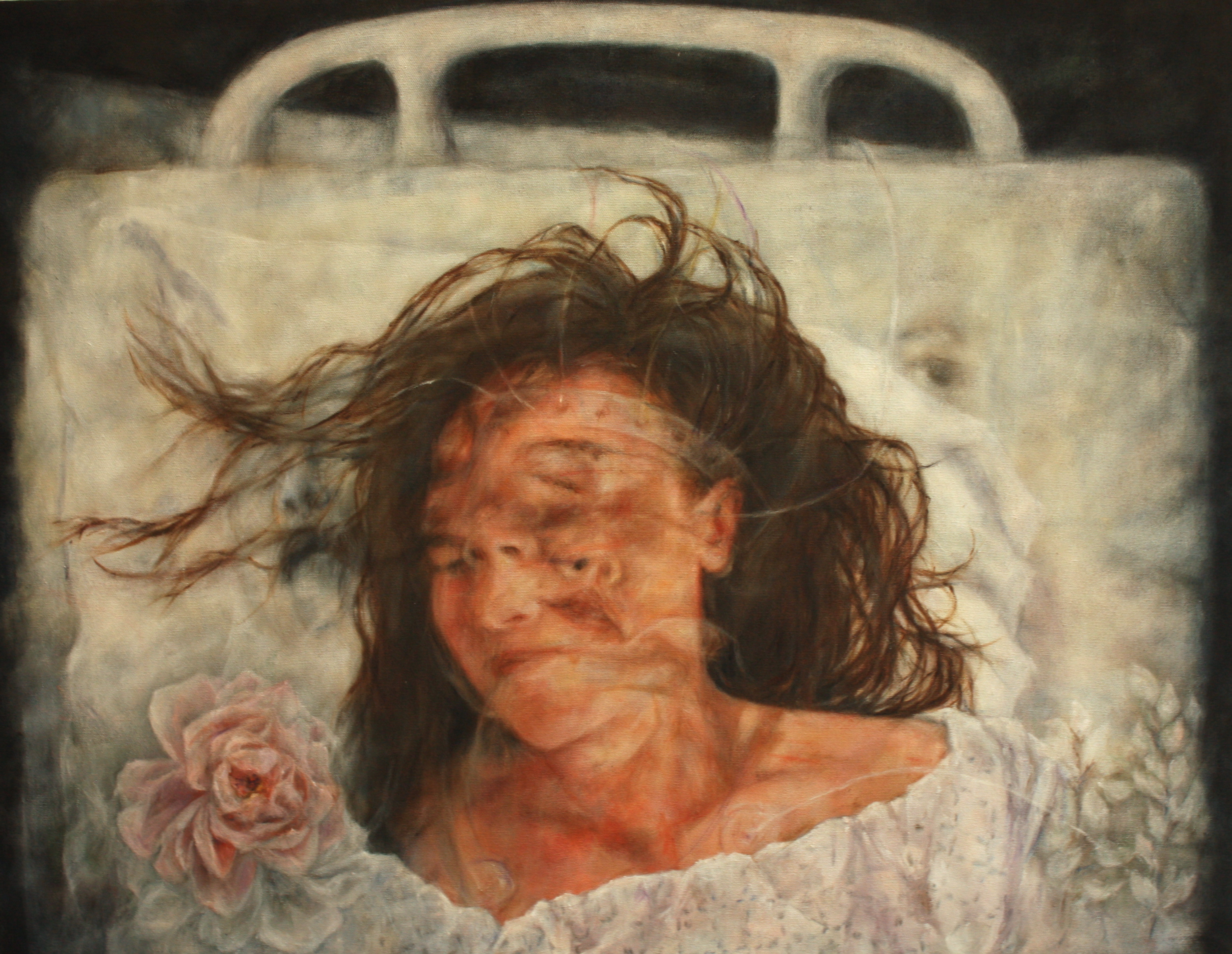 Altered State visualizes the patient’s perspective. I draw from historical records, patient testimonials, and my experience living with an unpredictable illness. In this series I explore how religion and ancient medicine have sought to govern the body and mind and juxtapose these practices with the feeling of lost control. With oils on canvas, I recreate the overwhelming experience of losing consciousness and ownership of the body.