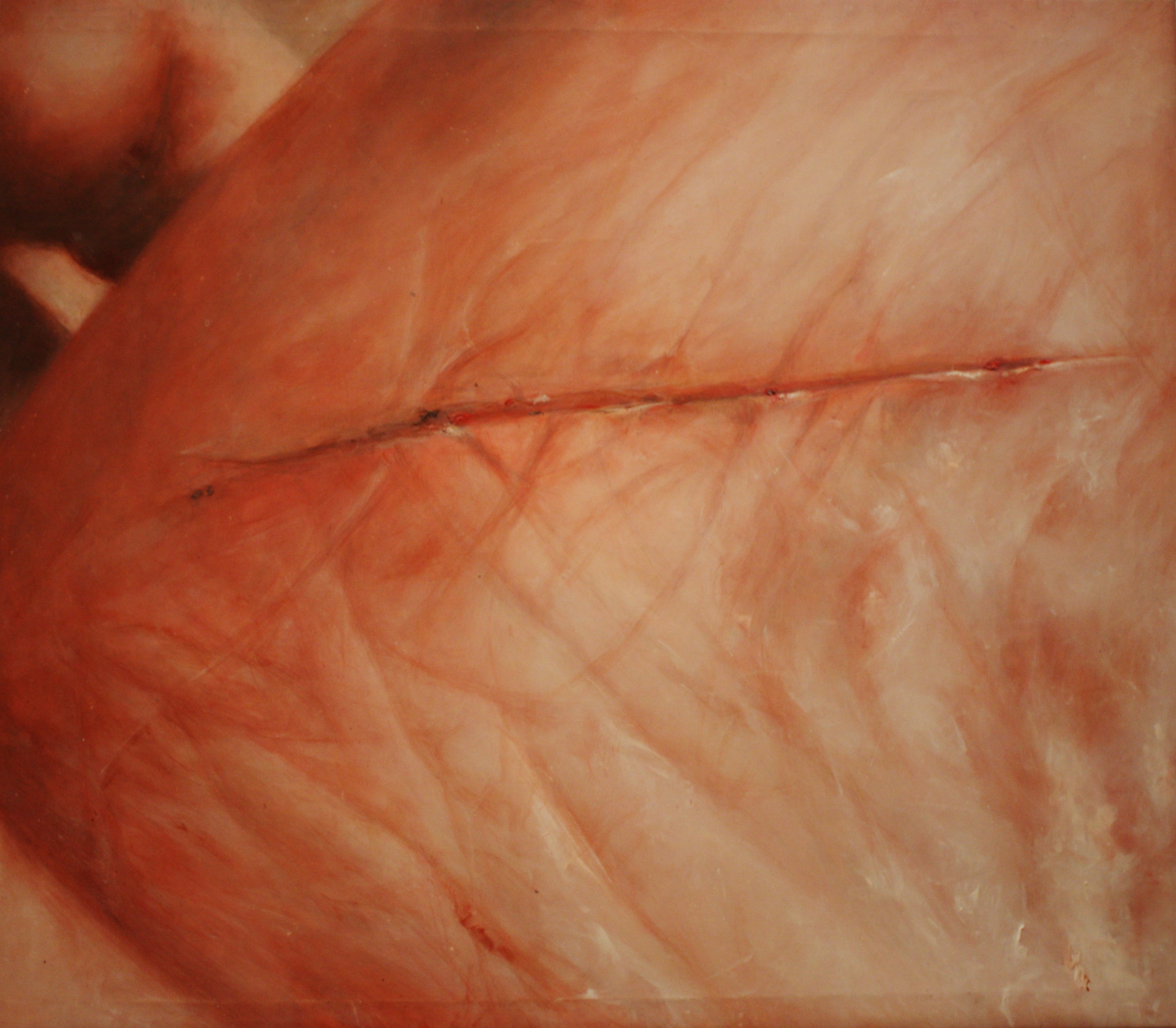 I have a photo archive of past wounds- sunburn, poison ivy scars, paper cuts, road rash. These wounds span several years of my life, and though this fascination with skin and wounds began subconsciously, it has since led to a deeper reflection of the resilience of the human body.
